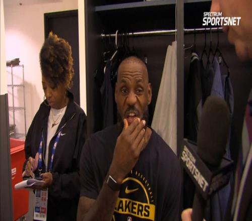 当被问到今晚球队在攻防两端有什么亮点,詹姆斯说:“我认为我们在进攻端的表现很不错。我认为在防守端,我们有一些要点,我们想要对他们施压,但也要在他们面前保持防守身位,迫使他们投受干扰的两分球,迫使他们出手运球后受干扰的三分球,而他们投进了很多这种球。我认为第一节的哨子吹得非常紧,我认为他们貌似第一节就罚了20次。(记者提醒是22次)是的,在这种情况下,你就很难建立好防守。我们有几次给了自己追回比分的机会,但这样追分的难度很大。”